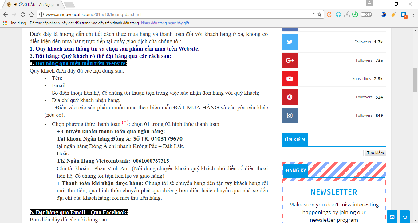Số là trang web gốc nguyenchatcafe.com đã bị trang web www.annguyencafe.com sao chép trái phép nội dung, bài viết bị sao chép thì “không nhiều”, chỉ khoảng 13 bài, khi vừa lập website luôn. Điều kỳ lạ là trang web gốc nguyenchatcafe.com đã kiện lên Google và trang web www.annguyencafe.com đã bị xóa 13 bài này khỏi kết quả tìm kiếm, có thông báo DMCA tại đây: